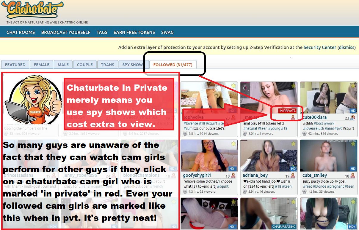 So many guys are unaware of the fact that they can watch cam girls perform for other guys if they click on a chaturbate cam girl who is marked ‘in private’ in red. Even your followed cam girls are marked like this when in private. It’s pretty neat!